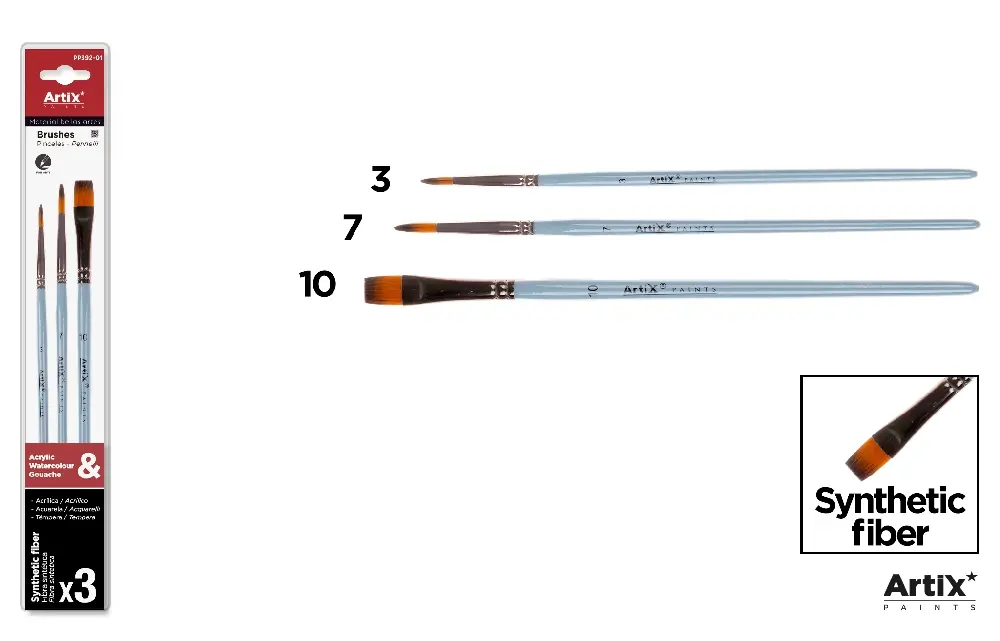 Pędzle syntetyczne zestaw 3szt./opakowanie